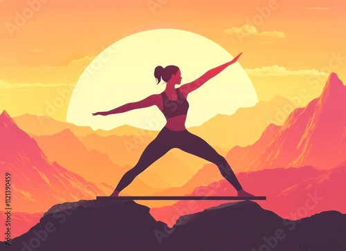 young, woman, yoga, pose, warrior, mountain, sunset, background, sky, summer, nature, fitness, grass, landscape, girl, sun, health, sport, lifestyle, exercise, person, healthy, meditation, sunrise, beautiful, adult, rock, body, relax, sunlight, zen, pilates, asana, evening, balance, relaxation, alone, caucasian, female, fit, 1, practicing, standing, freedom, joy, meditating, one person, spirituality