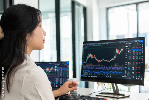 young, woman, office, desk, computer, laptop, ipad, stock, graph, analysis, investment, focused, diligent, workspace, technology, finance, datum, screen, professional, business, working, analysing, opportunity, trading, research, market, digital, studying, economic, corporate, strategy, career, businesswoman, modern, dedicated, productivity, information, currency, concentration, contemplation, success, display, cyberspace, manager, cyberspace, monitor, planning, occupation, growth