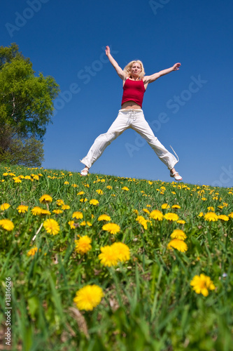 acrobat, activity, female, meadow, summer, happiness, success, leisure, holiday, cheerful, blowball, energy, flowery, flying, free, freedom, fun, girl, grass, happy, healthy, joy, jump, jumping, lifestyle, nature, outdoors, pant, play, red, relax, sky, smiling, spring, student, vacation, vitality, well-being, wellness, white, woman, woman, young, youth