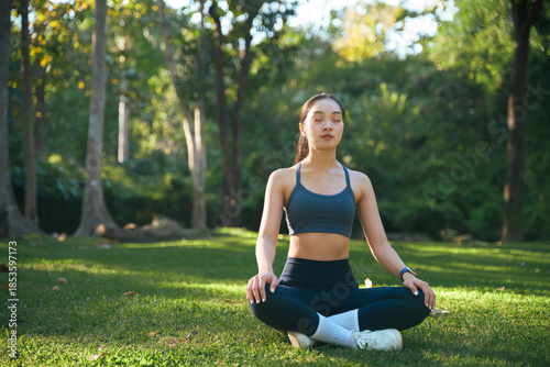 meditation, mindfulness, yoga, wellness, nature, serenity, balance, exercise, mental, health, peaceful, tranquil, relaxation, healthy, lifestyle, practicing, stretching, concentrating, feeling, good, well-being, zen, harmony, spiritual, self, care, calmness, female, woman, asian, park, tree, grass, sunlight, fitness, sport, active, young, adult, alone, scene, quiet, body, positivity, breathing, spirituality