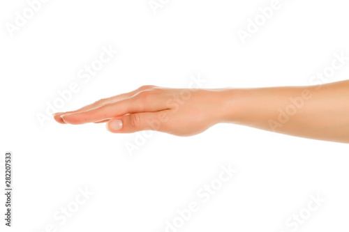 hand, isolated, woman, arm, finger, palm, white, human, hand, open, holding, gesture, beautiful, signs, body, skin, care, people, empty, hold, closeup, manicure, giving, thumb, beauty, massage, finger, background, concept, girl, health, healthy, lady, medicals, nail, pain, painful, point, showing, side, spot, trigger
