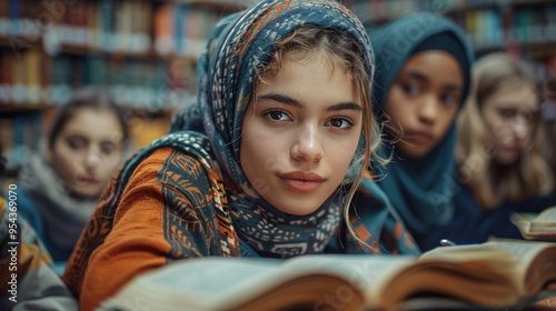 library, education, team, student, young, learning, adult, college, occupation, african american, interracial, tied-up, focused, indoor, international, involved, studying