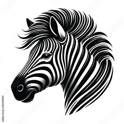 zebra, animal, white, black, mammal, wildlife, isolated, wild, zoo, safari, stripes, striped, horse, vector, head, portrait, nature, illustration, mane