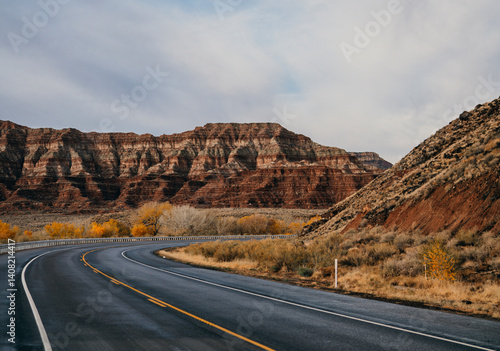 road, canyon, cloudy, zion, national park, roadway, yellow line, nature, wonder