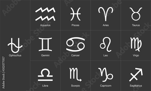 Zodiac signs set 13 with oph on black background