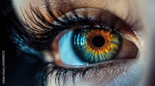 Zoomed-in view of an eye with hybrid eyelash extensions, combining length and volume for a bold look.