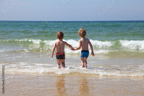 children, children, sea, atlantic, water, horizon, heaven, blue, green, sand, beach, coast, friends, hand, holding, wave, spray, wet, summer, vacation, vacation, heat, hot, warm, common, 2, boy, knave, brother